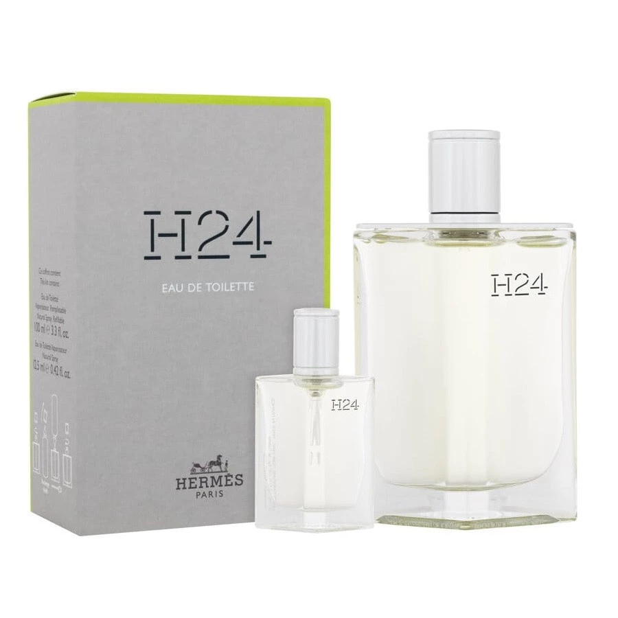 Zestaw zapachowy Hermes H24, w skład którego wchodzi woda toaletowa 100ml oraz woda toaletowa 12,5ml.