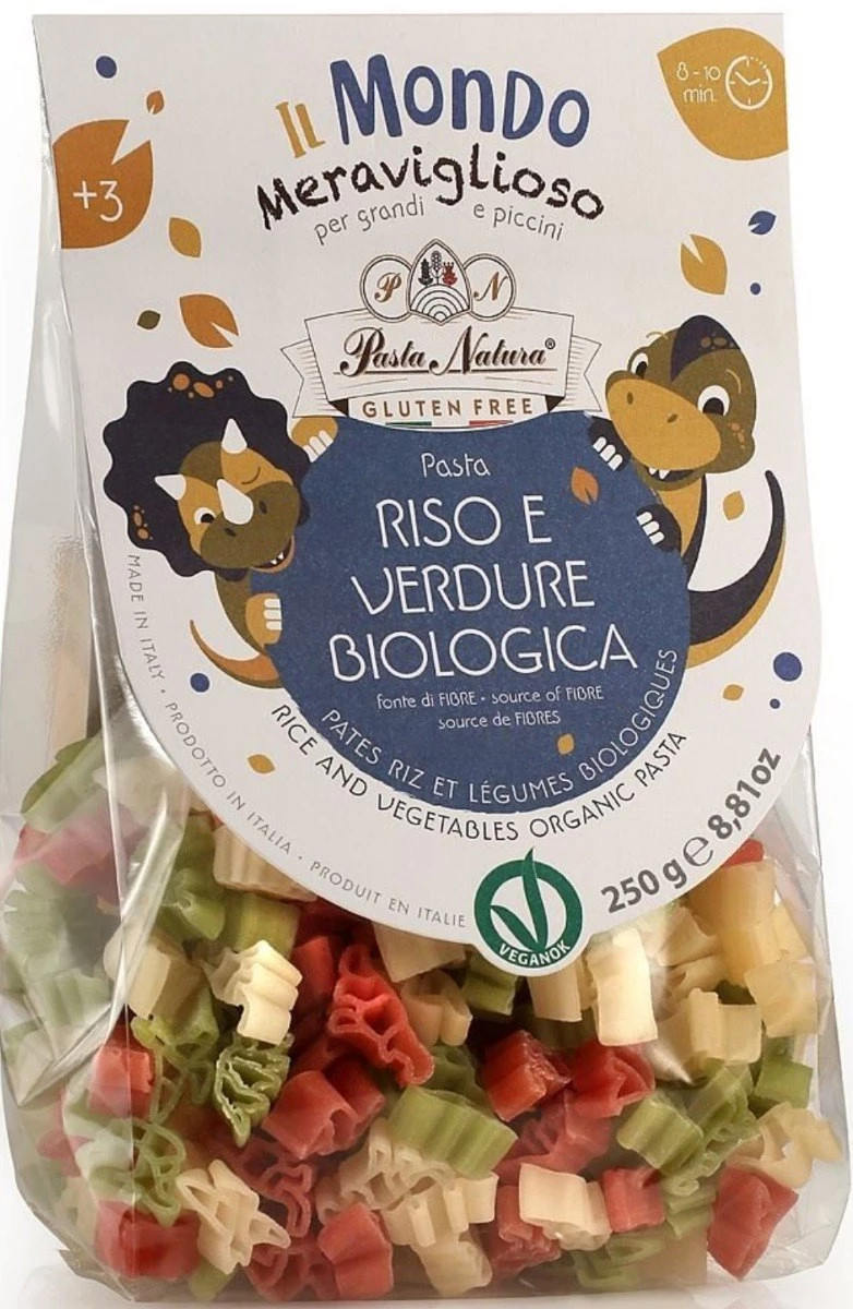 MAKARON (RYŻOWY TRÓJKOLOROWY) DLA DZIECI DINOZAURY BEZGLUTENOWY BIO 250 g - PASTA NATURA
