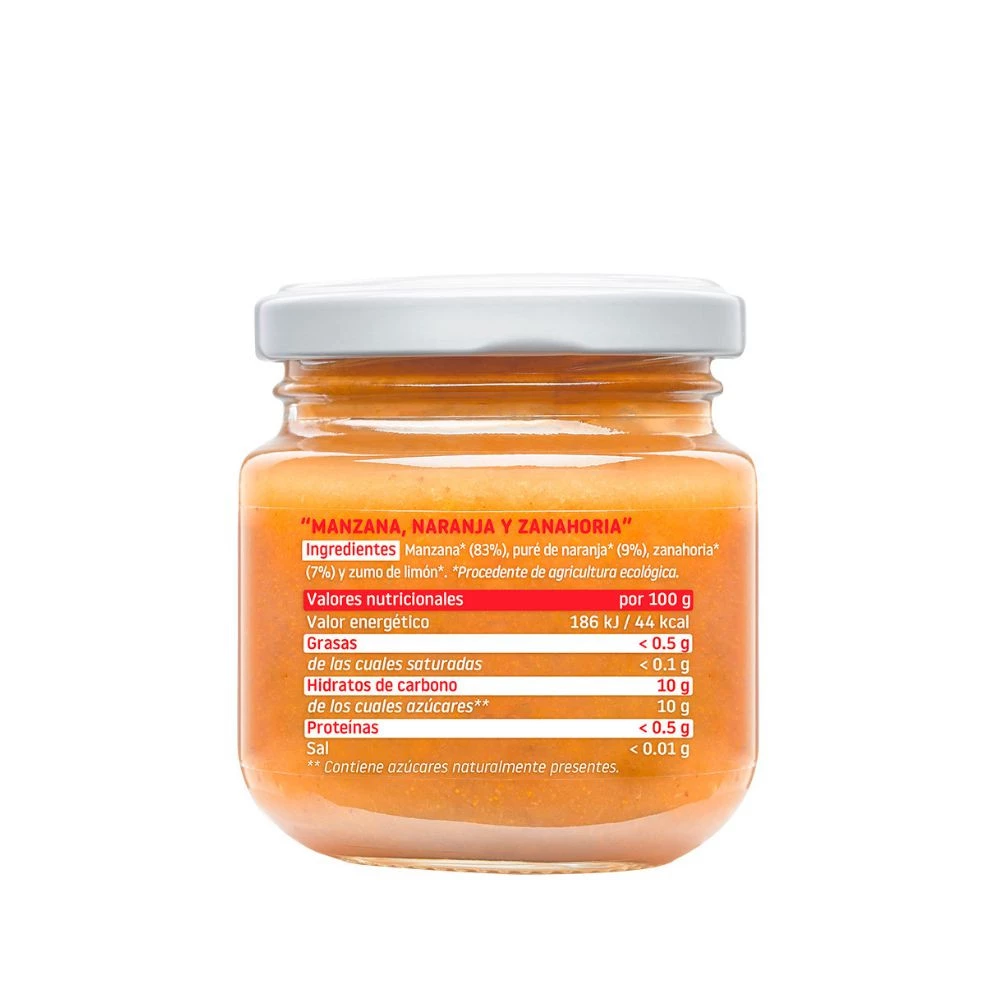 Daj swojemu dziecku smakowitą i zdrową ucztę dzięki naszemu deserowi w słoiczku z ekologicznymi jabłkami, marchewką i pomarańczą!