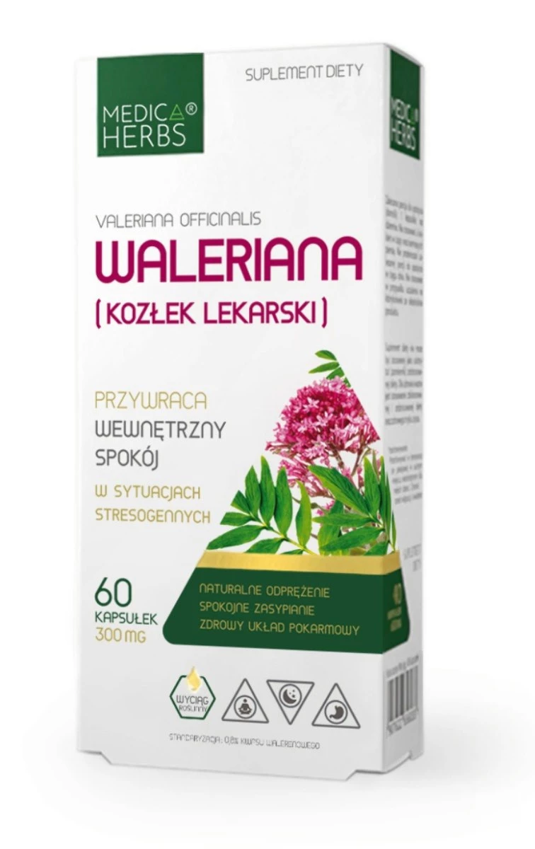 Medica Herbs Waleriana (Kozłek Lekarski) 300 mg 60 Kapsułek to suplement diety stworzony z myślą o osobach, które pragną wprowadzić do swojej suplementacji dobrej jakości źródło kozłka lekarskiego.