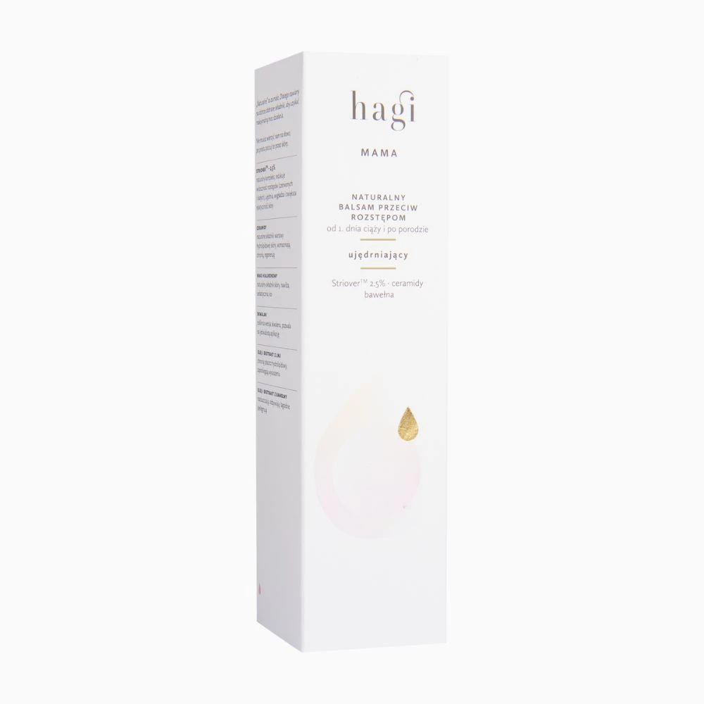 Czym smarować brzuch w trakcie magicznych 9 miesięcy oczekiwania? Odkryj nasz naturalny krem na rozstępy w ciąży Hagi MAMA. Bezpieczna i skuteczna formuła została stworzona, aby odpowiedzieć na wyjątkowe potrzeby skóry w tym okresie. Podczas tego szczególnego czasu jak i po porodzie organizm pracuje na całego, a pod sercem dzieje się cud! Brzuszek rośnie, ciało się zmienia, wszystko jest w porządku. Nasz balsam zadba o odpowiednie nawilżenie, zwiększenie elastyczności oraz zminimalizuje uczucie swędzenia i prawdopodobieństwo pojawienia się rozstępów (białych oraz czerwonych).