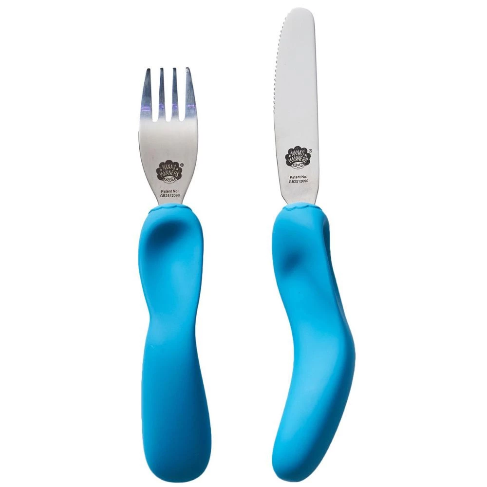 Nana's Manners, ETAP 3, Sztućce do samodzielnego jedzenia, widelec i nóż, morski niebieski, 3-9 lat