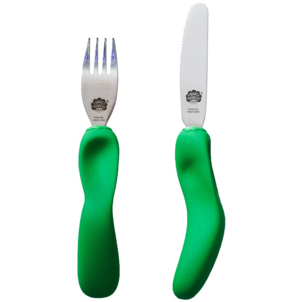 Nana's Manners, ETAP 3, Sztućce do samodzielnego jedzenia, widelec i nóż, zielone, 3-9 lat