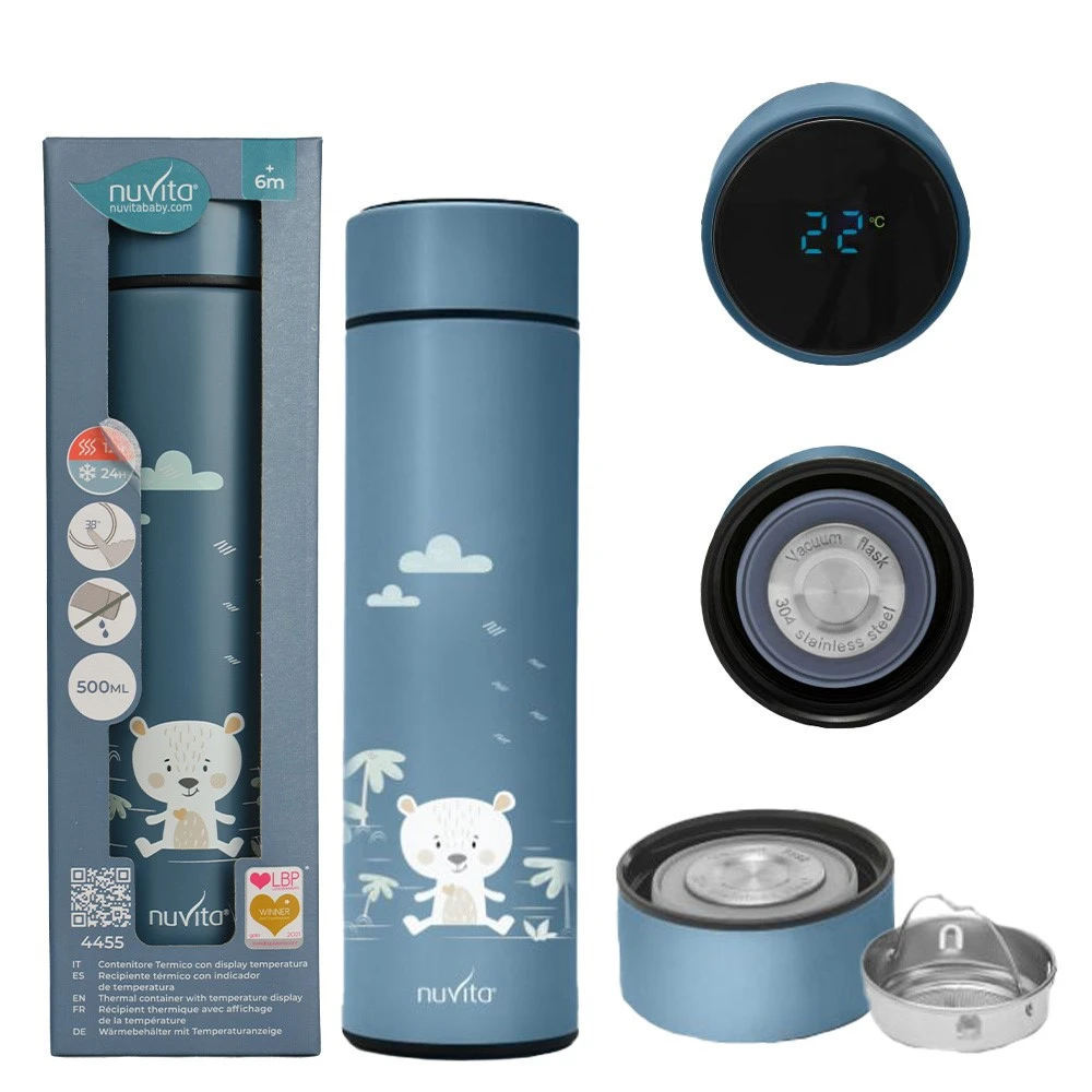 Nuvita, Termos z czujnikiem temperatury, Niebieski, 500 ml