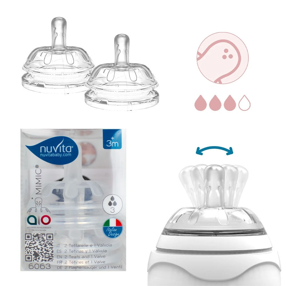 Nuvita, Zestaw 2 smoczków o szerokim przepływie 3m+ i zaworek