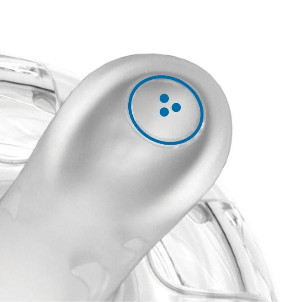 Specjalny płaski, wydłużony kształt i wklęsła podstawa pozwalają smoczkowi poruszać się w górę i w dół, rozciągać i kurczyć tak jak sutek podczas karmienia piersią. Dodatkowo duża powierzchnia i efekt „skóropodobny” dają dziecku uspokajające uczucie kontaktu z piersiami mamy.