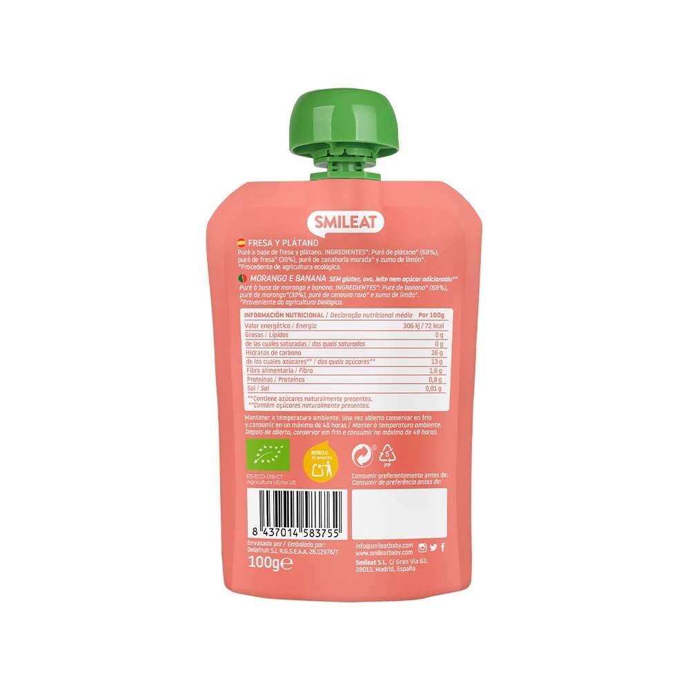 Smileat, BIO Mus z truskawkami i bananem 6m+, 100g