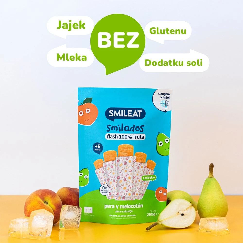 Smileat, BIO Smilados, Mus owocowy do mrożenia o smaku gruszki i brzoskwini, idealny na ząbkowanie 6m+, 5x50g