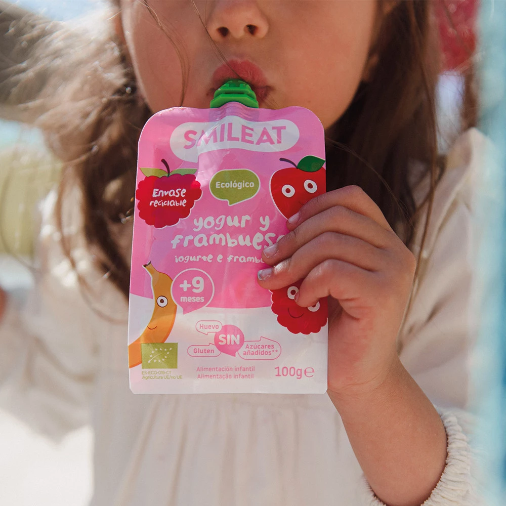 Daj swojemu dziecku smakowitą i zdrową przekąskę dzięki naszemu musowi z ekologicznymi malinami i jogurtem!