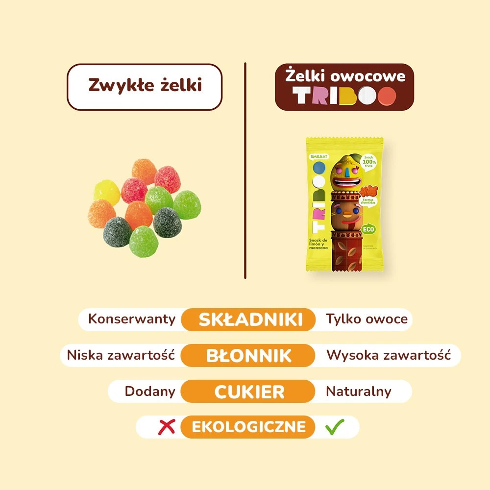Smileat Triboo, BIO Sminolas, Żelki owocowe bez cukru Jabłko i Jagoda, 25g