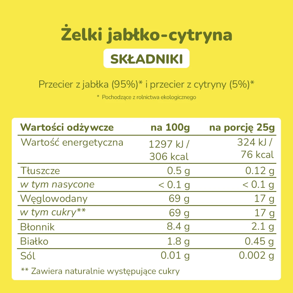 SKŁAD: przecier jabłkowy* (95%), przecier cytrynowy*(5%)