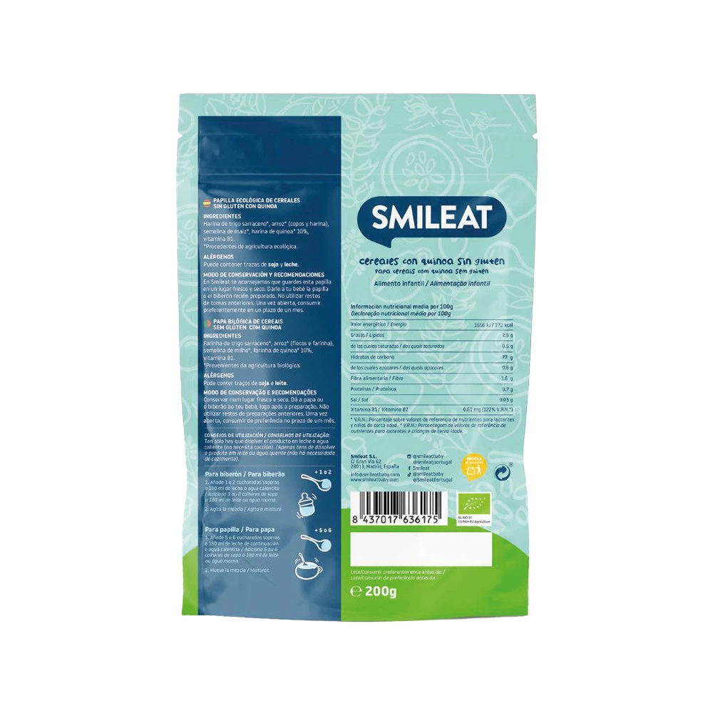 Smileat, Ekologiczna bezglutenowa kaszka dla niemowląt z komosą ryżową, 200g