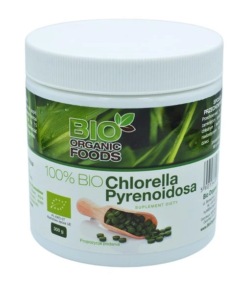 Produkt BIO ORGANIC FOOD 100% BIO Chlorella Pyrenoidosa BIO ORGANIC FOODS to suplement diety. Nie może być stosowany jako substytut zróżnicowanej diety. Pamiętaj o zrównoważonym sposobie żywienia i zdrowym trybie życia.
