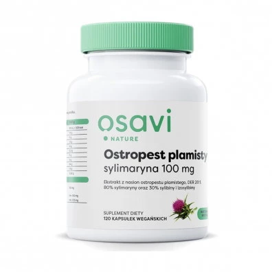 Suplement diety Osavi Ostropest Plamisty Sylimaryna to wysokiej jakości produkt, który zawiera ekstrakt z nasion ostropestu plamistego. Substancja ta jest źródłem cennych składników aktywnych, takich jak: sylimaryna, sylibina i izosylibyna. Preparat marki Osavi odznacza się prostym, wegańskim i naturalnym składem. Ma postać celulozowych kapsułek i nie zawiera glutenu.