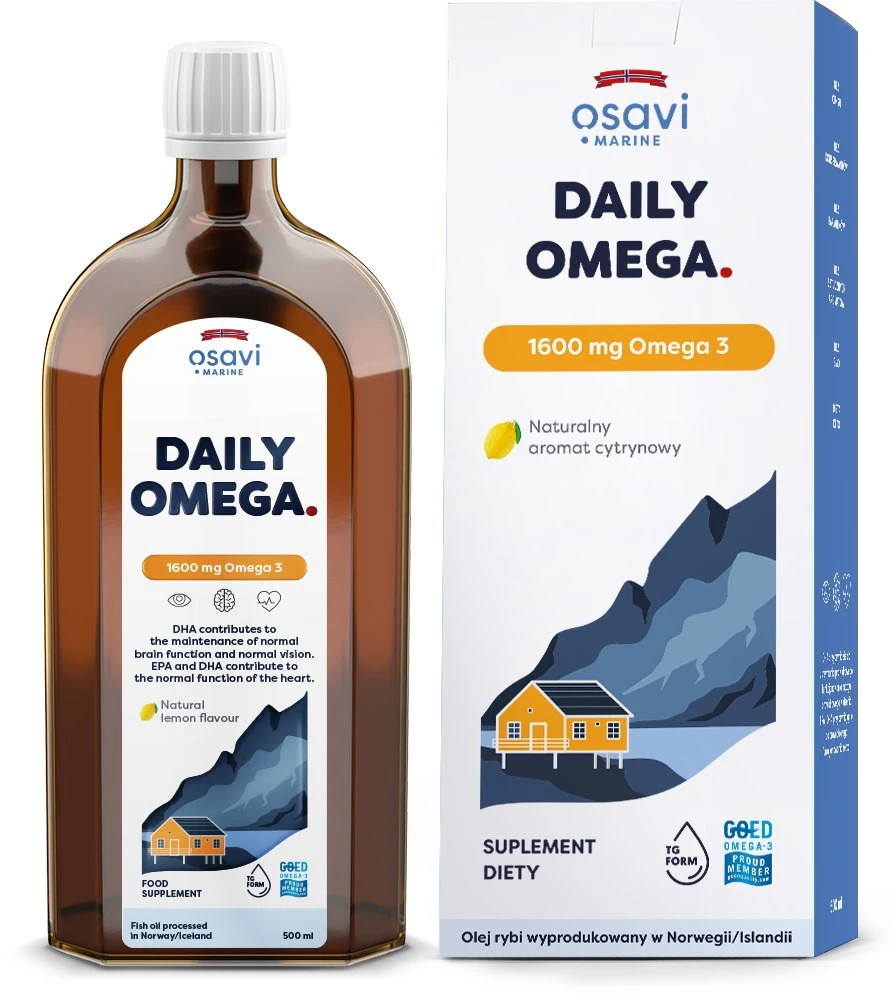 Produkt OSAVI Daily Omega 1600 mg - smak cytrynowy (500 ml) Osavi to suplement diety. Nie może być stosowany jako substytut zróżnicowanej diety. Pamiętaj o zrównoważonym sposobie żywienia i zdrowym trybie życia.- Przechowuj w chłodnym miejscu, z dala od bezpośredniego światła słonecznego.