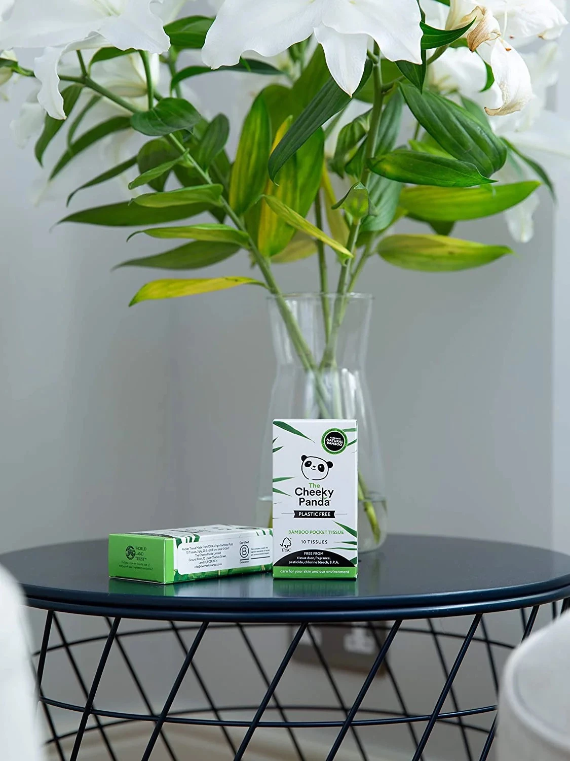 To najbardziej ekologiczne jednorazowe chusteczki na świecie! Produkowane wyłącznie z trawy bambusa – rośliny, którą nie żywią się pandy, rosnącą z dala od ich naturalnych skupisk. Jedyne wyroby papierowe z certyfikatem FSC 100%.