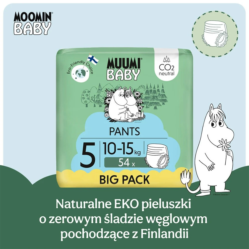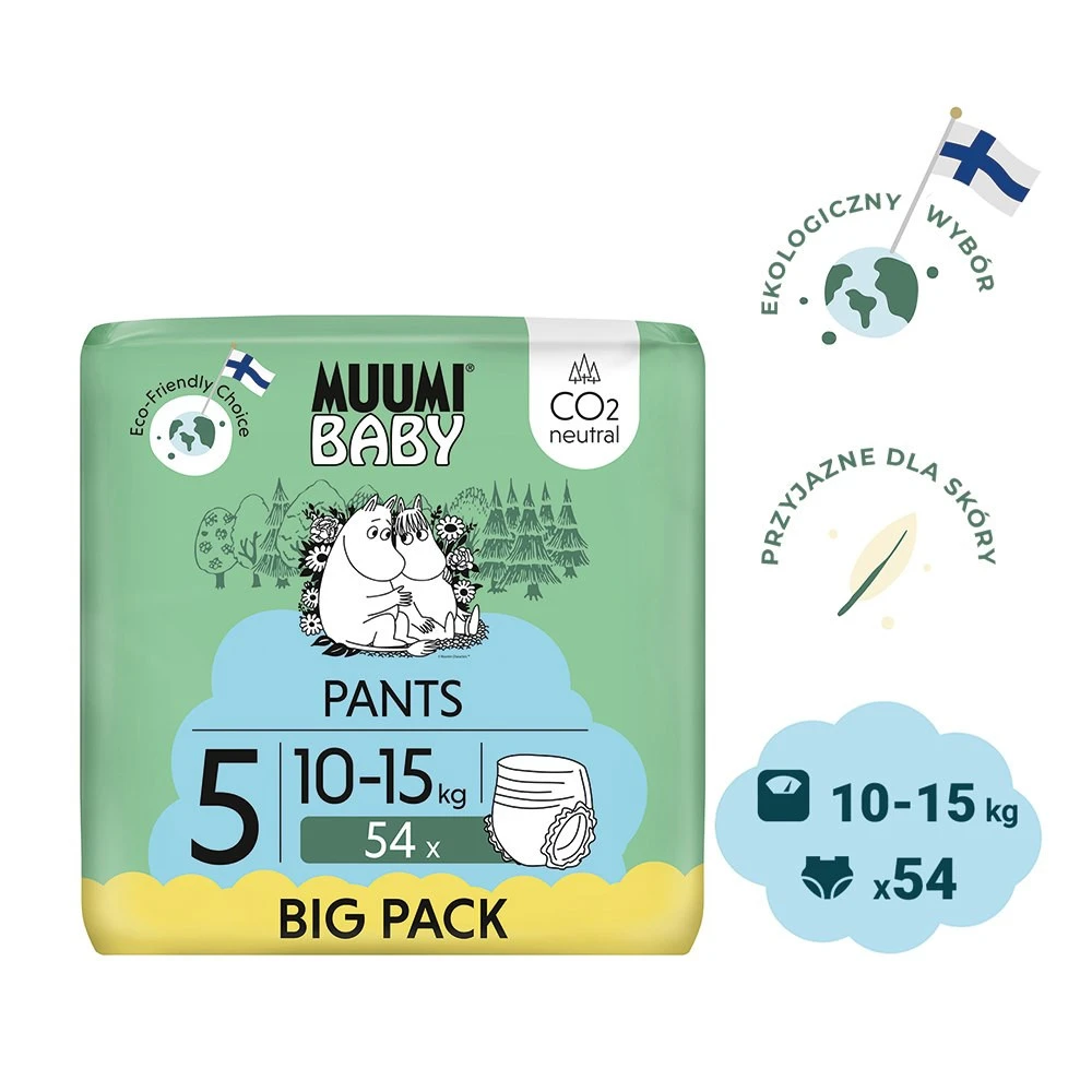 Fińska rodzinna firma Delipap Oy znana z doskonałych pieluszek Muumi Baby ma również w swojej ofercie doskonałe pieluchomajtki dla dzieci raczkujących i starszych. Ekologiczne pieluchomajtki 5 przeznaczone są dla małych dzieci o wadze od 10 do 15 kg. Są polecane szczególnie dla dzieci z wrażliwą skórą skłonną do podrażnień lub reakcji alergicznych.