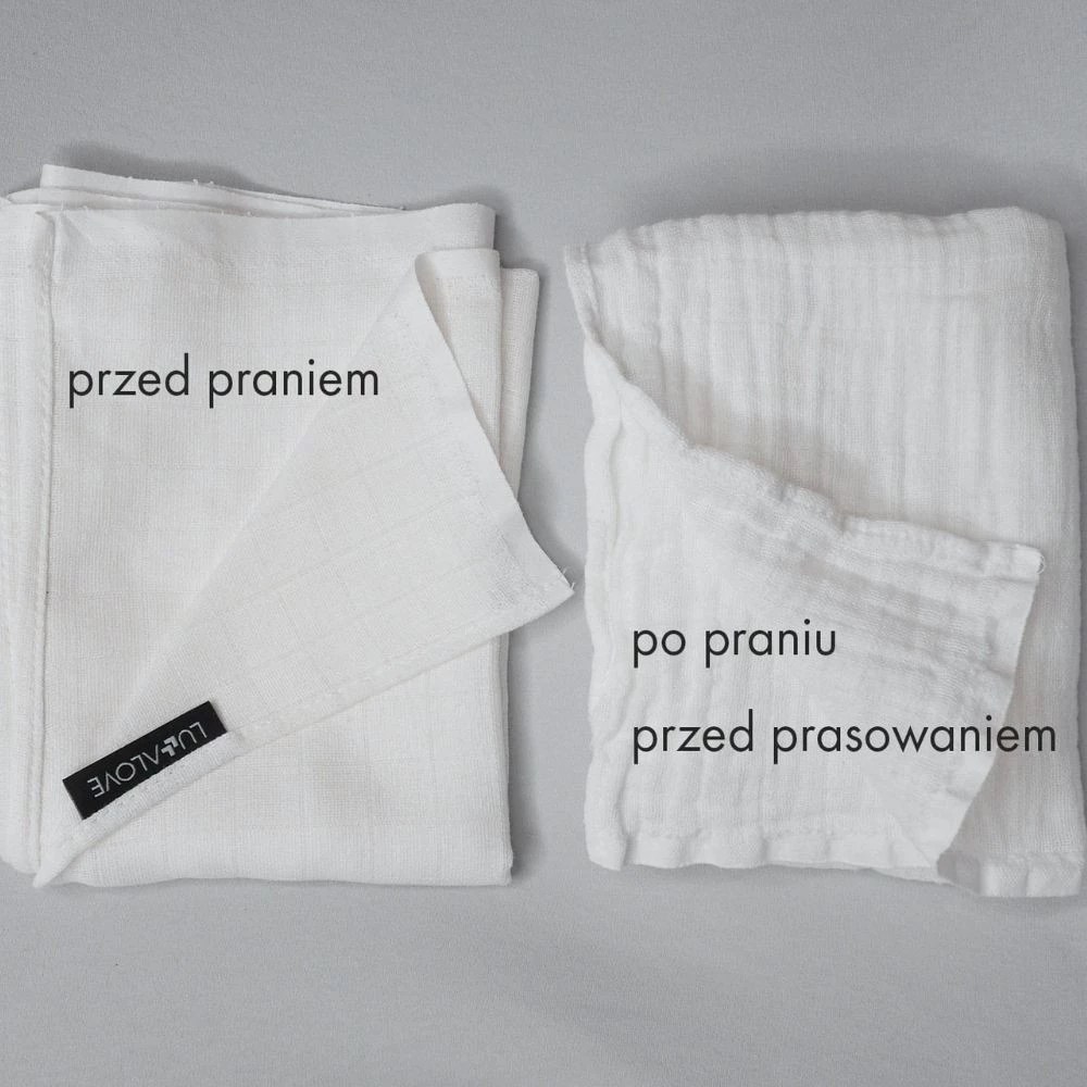 Można prać w temperaturze 95 stopni Celsjusza oraz prasować. Aczkolwiek ze względów ekologicznych, pranie w 40 stopniach i potem prasowanie, zdecydowanie wystarczy (prasowanie zabija ewentualne bakterie lepiej niż samo pranie), a taka mała zmiana ma ogromny wpływ na środowisko. Nie suszyć w suszarce bębnowej. Możliwość wykurczenia w praniu do około 7%. Po praniu strzepnąć i uformować.