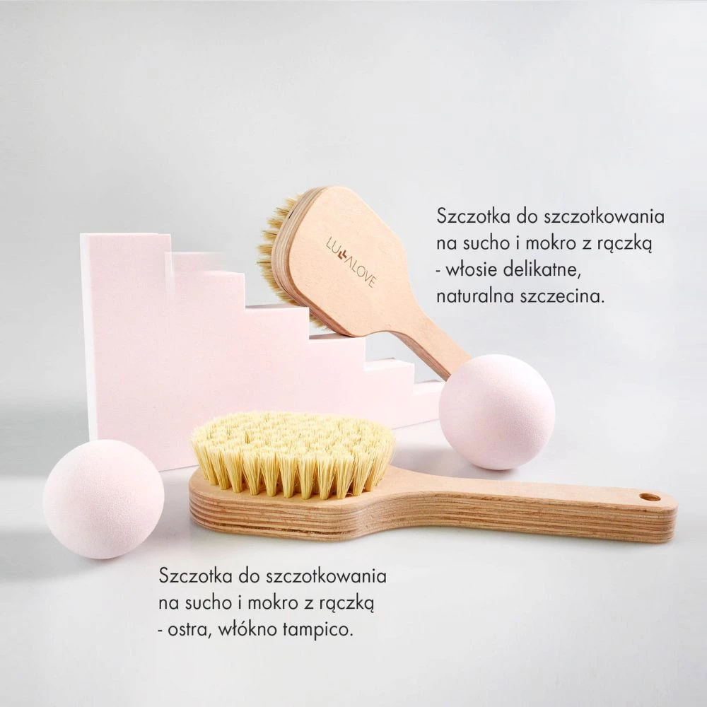 Z upływem czasu nasz metabolizm spowalnia. Pojawia się opuchlizna, zastoje wody czy ociężałość kończyn. Jest to efekt złej pracy układu limfatycznego. Szczotkowanie pomaga zniwelować te przypadłości. Twarda szczotka doskonale radzi sobie również z cellulitem, wrastającymi włoskami czy szorstkimi przedramionami, pośladkami czy łokciami. Na początku masaż może wydać się bolesny i jest to normalne odczucie. Skóra musi przyzwyczaić się do niego. Tradycja szczotkowania na sucho wywodzi się z medycyny ajurwedyjskiej. Celem masażu, oprócz delikatnego usunięcia martwego naskórka, jest pozbycie się złogów toksyn, czyli drenaż limfatyczny. Masaż pomaga także pozbyć się napięcia. Wykonany rano - pobudza, wieczorem - relaksuje. Dzięki oprawie z klejonego drewna, szczotkowanie można wykonywać na sucho oraz w kąpieli. Pamiętając o zostawieniu szczotki do wyschnięcia i nie trzymanie jej w wodzie. Długa rączka ułatwia także szczotkowanie trudno dostępnych miejsc jak plecy czy stopy, u osób mających problem z ich dosięgnięciem.