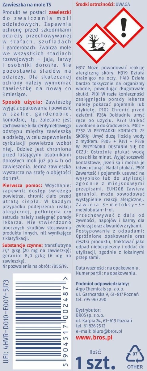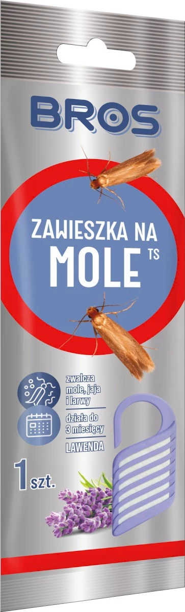 - Zwalcza mole odzieżowe we wszystkich stadiach rozwojowych (jaja, larwy, dorosłe owady). Działa aż do 3 miesięcy – długotrwała ochrona