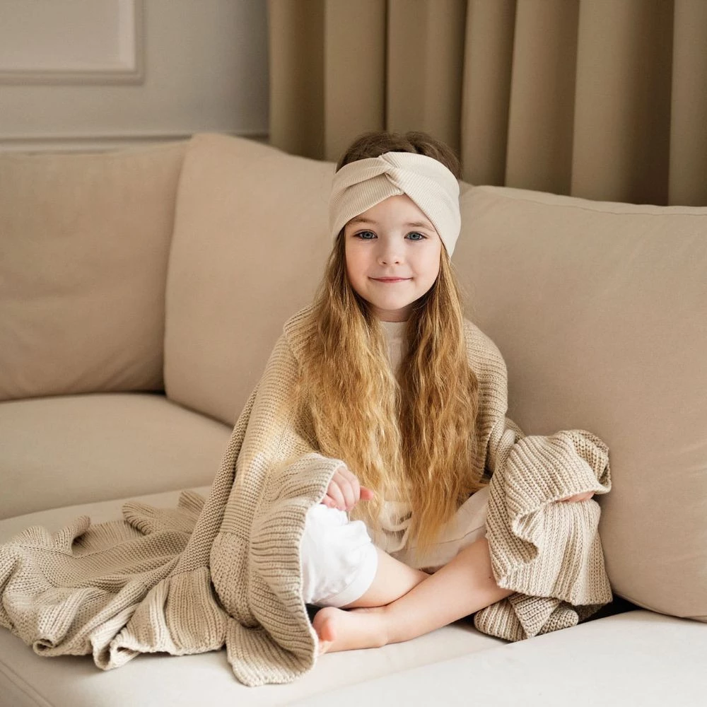 Rozmiar jest przybliżony w zależności od ułożenia, dzianina pracuje i rozmiar może odbiegać od standardu +/- 5%. Jeden z boków kocyka nie rozciąga się aż tak jak pozostałe. Wynika to z procesu produkcji i jest zabiegiem celowym.