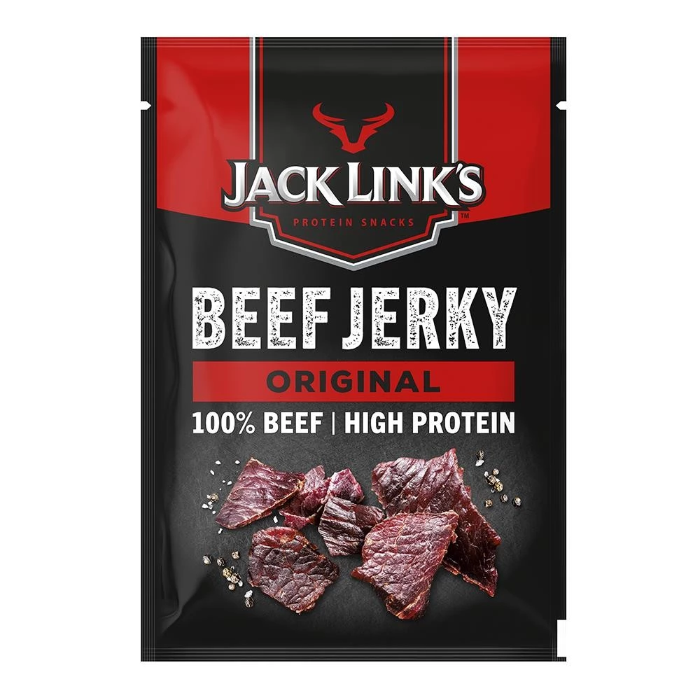 - Suszona wołowina Jack Link’s Beef Jerky Original 60g to przepyszna, wysokobiałkowa przekąska, która zapewni Ci dużą dawkę energii. Spróbuj delikatnych kawałków najlepszej wołowiny.