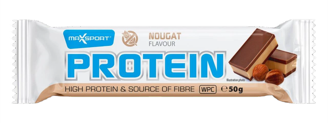 BATON PROTEINOWY WPC O SMAKU NUGATOWYM W MLECZNEJ CZEKOLADZIE BEZGLUTENOWY 50 g - MAXSPORT