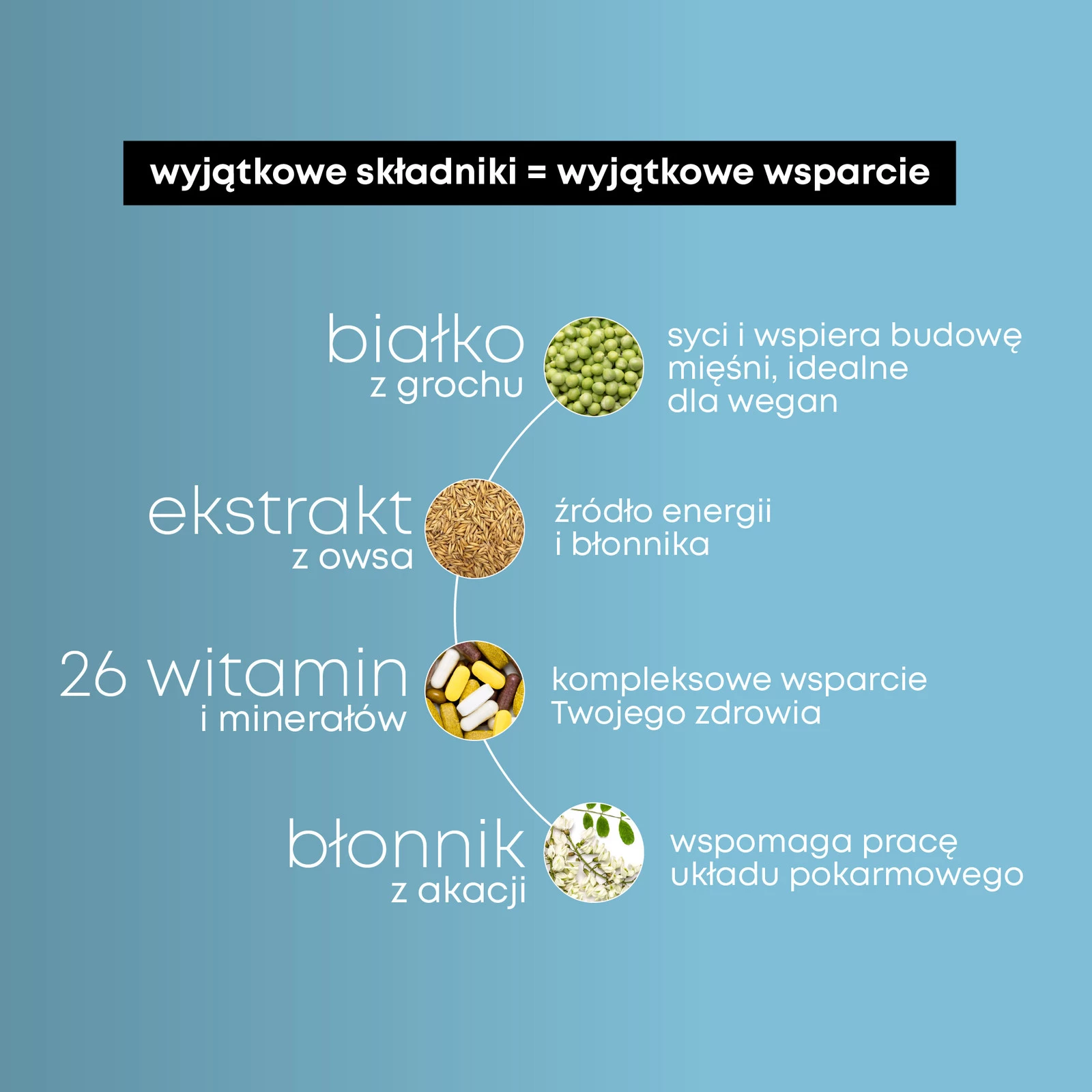 - ✅ 100% roślinna formuła – na bazie owsa, grochu i błonnika z akacji