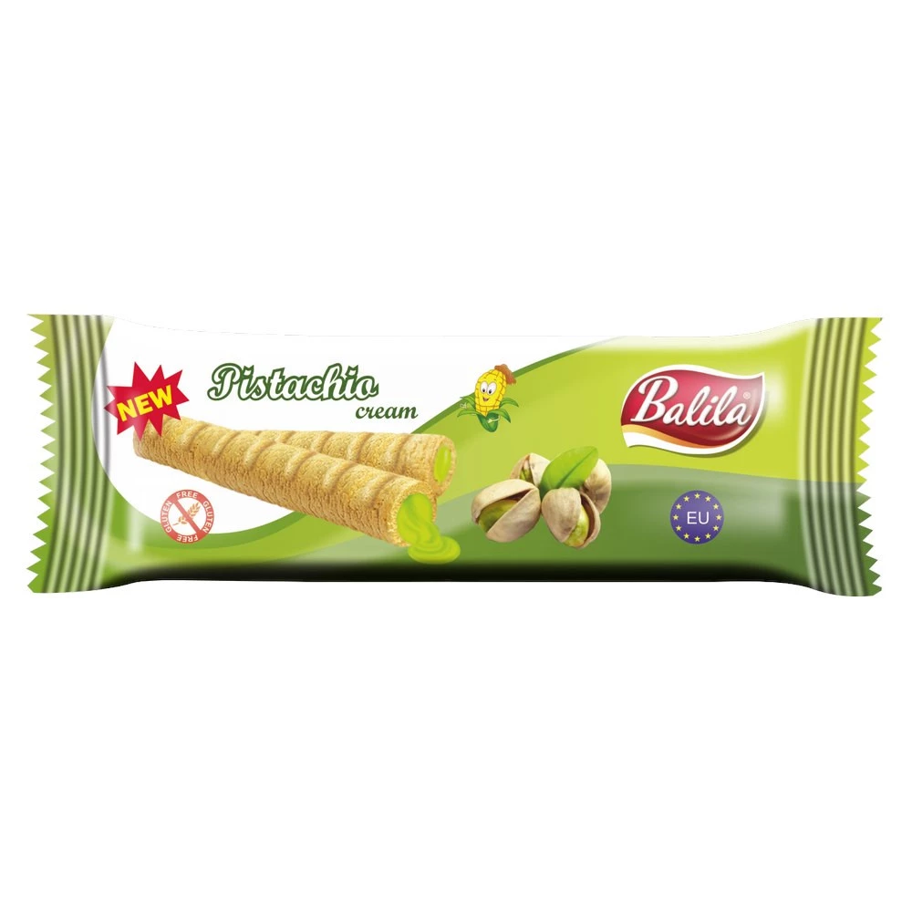 RURKI KUKURYDZIANE NADZIEWANE KREMEM O SMAKU PISTACJOWYM BEZGLUTENOWE 18 g - BALILA