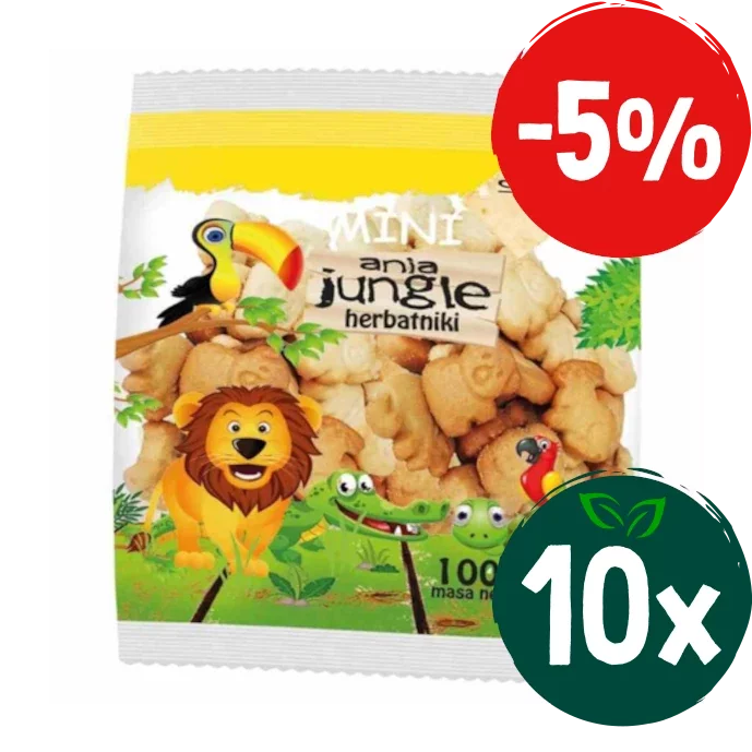 Zestaw: 10x Herbatniki szkolne Mini Jungle 100 g