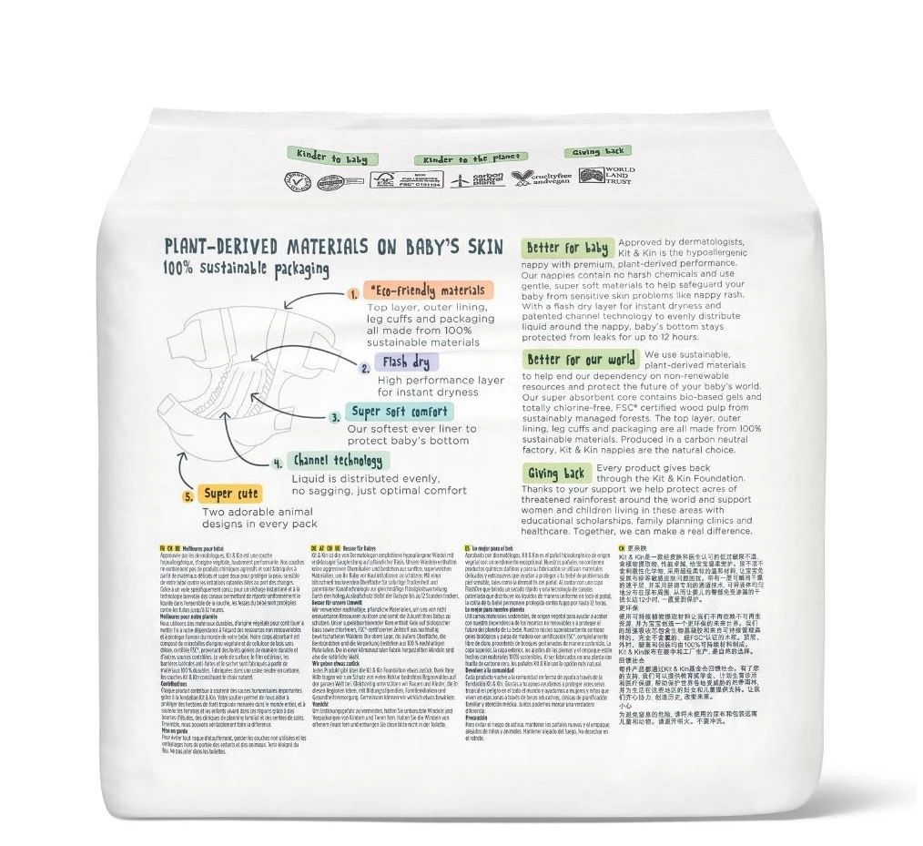 Zdecydowanie lepiej dla środowiska: Kit&Kin chroni również środowisko, a prawie każdy element pieluchy ulegnie biodegradacji w ciągu 3 do 6 lat.
