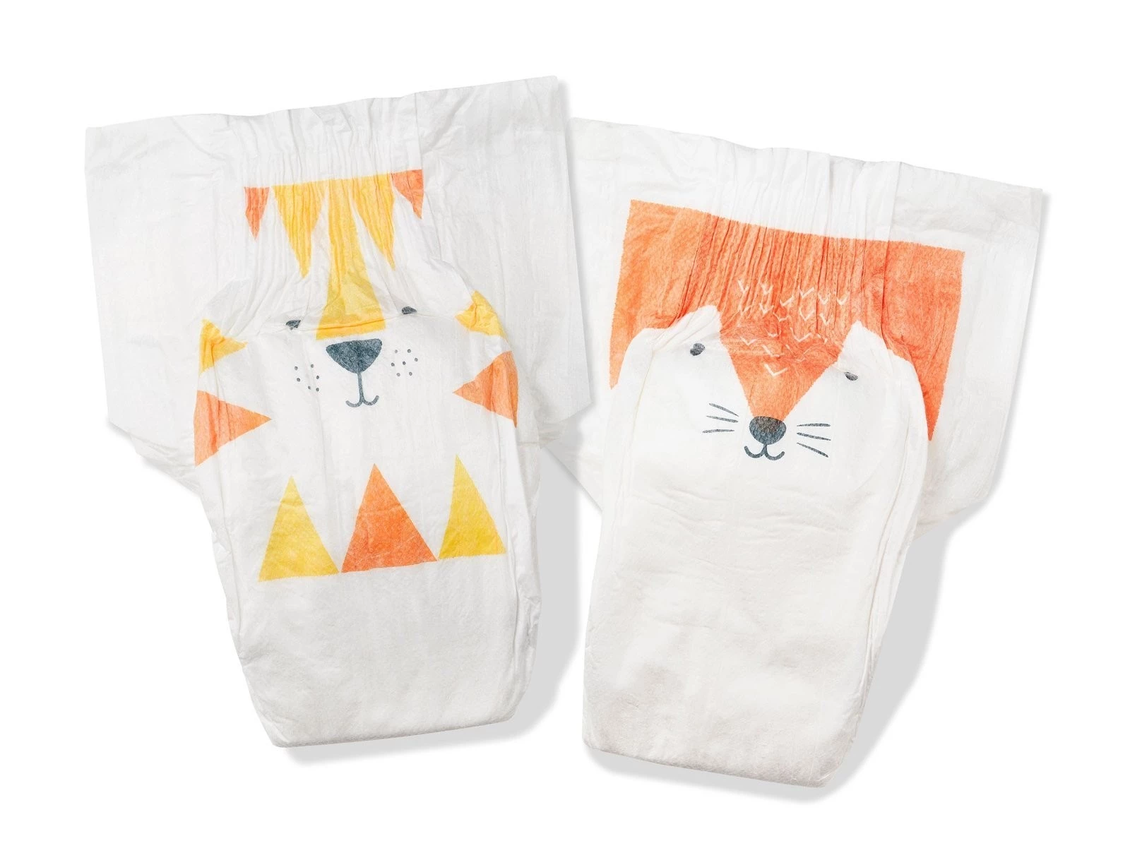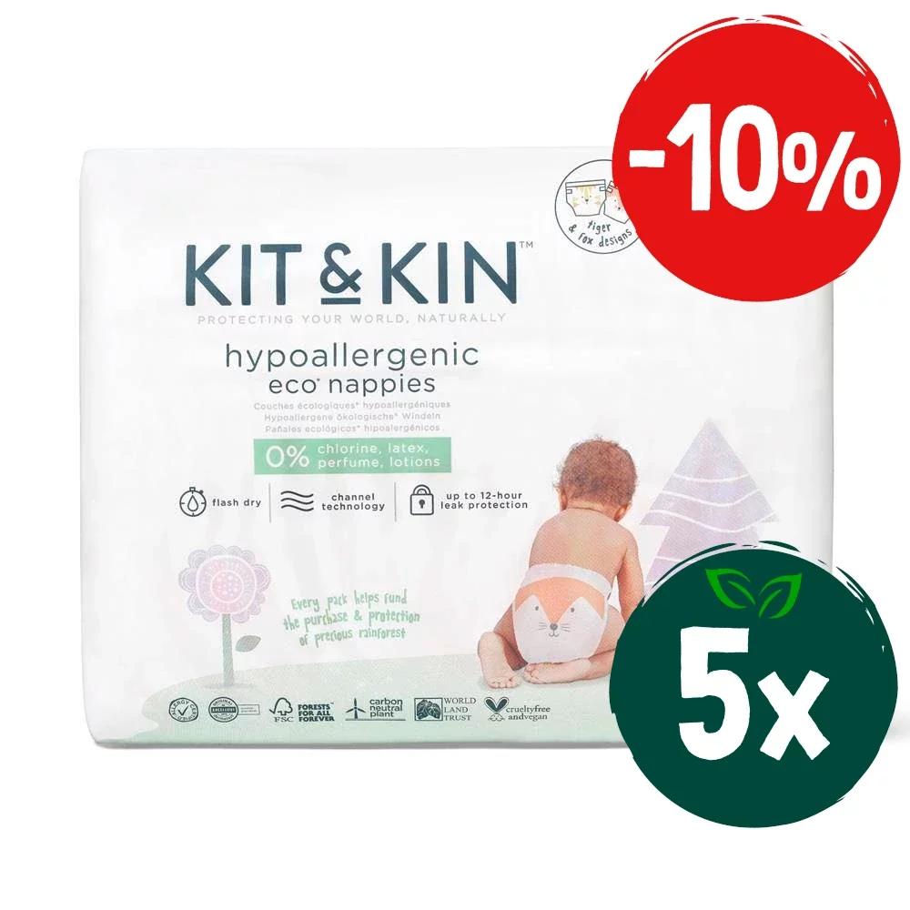 Zestaw: 5x Kit and Kin, Biodegradowalne Pieluszki Jednorazowe 4 Maxi Plus (9-14kg), Fox/Tiger, 32 szt.