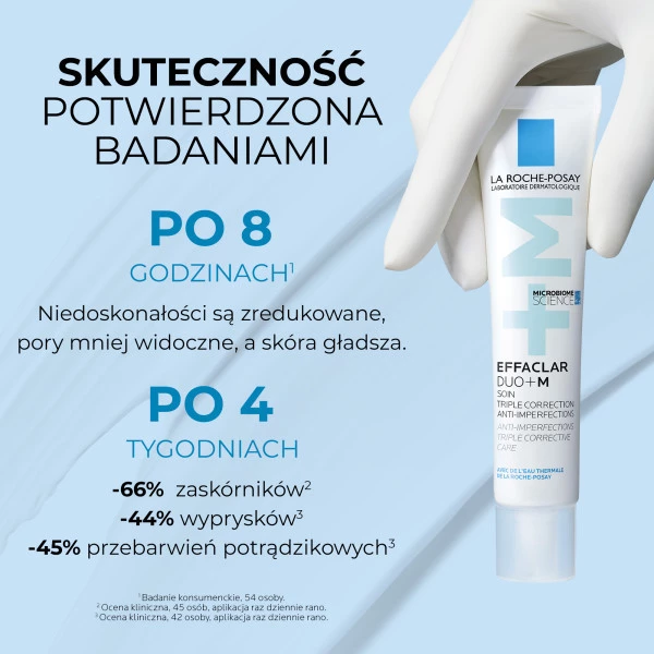 - Effaclar Duo+M to lekki krem-żel do skóry trądzikowej, który redukuje zaskórniki, wypryski i przebarwienia potrądzikowe, jednocześnie nawilżając i matując skórę przez 24h.