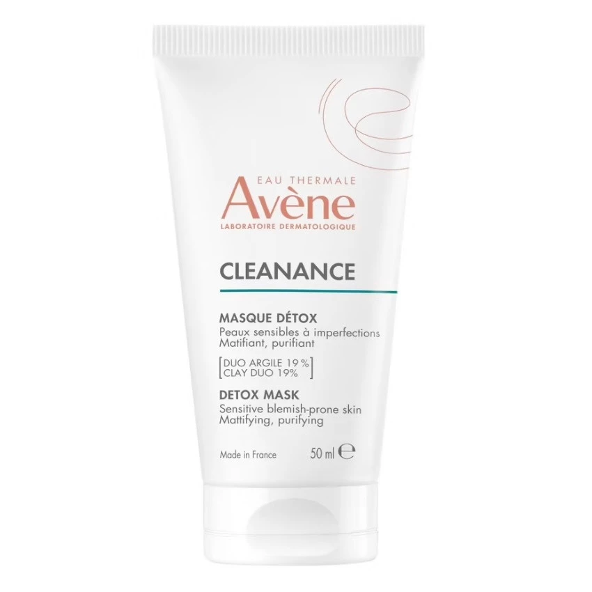 Cleanance Detox Mask to bezkompromisowa maska dla skóry wrażliwej z niedoskonałościami. Dzięki ekskluzywnemu połączeniu skoncentrowanych glinek chłonnych (19%) i złuszczającego perlitu oczyszcza, matuje i zwęża pory w 5 minut*. Pozostawia skórę komfortową i ukojoną dzięki składnikom nawilżającym i odżywczym związanym z wodą termalną Avene, a wszystko to w biodegradowalnej i wegańskiej formule. Niedoskonałości są zredukowane u 90% użytkowników**.