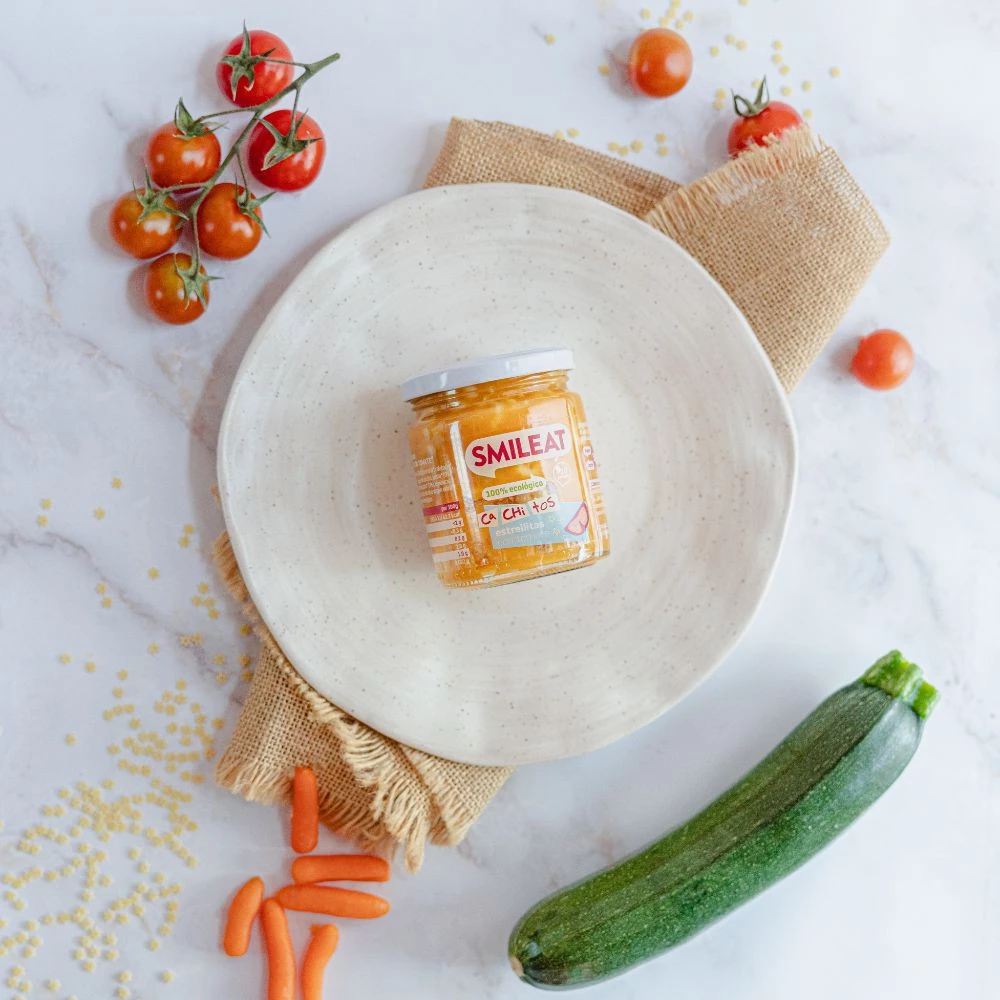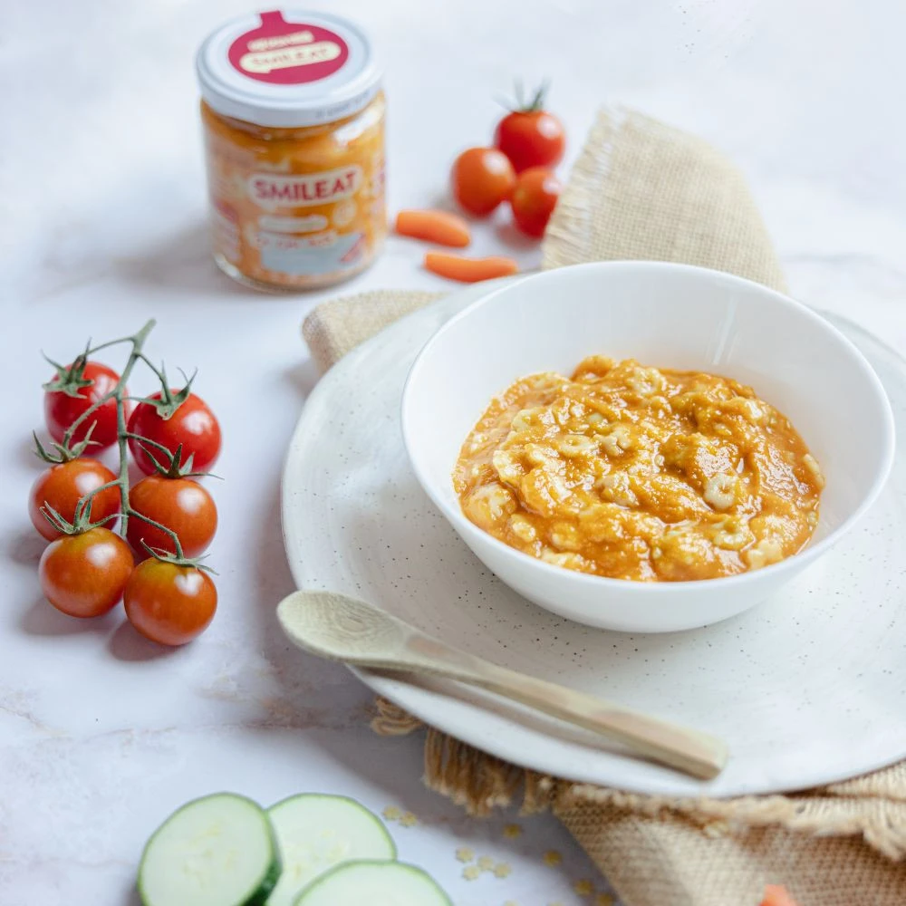 Daj swojemu dziecku smakowitą i zdrową ucztę dzięki naszemu słoiczkowi z ekologicznymi małymi kawałkami makaronu z pomidorami!