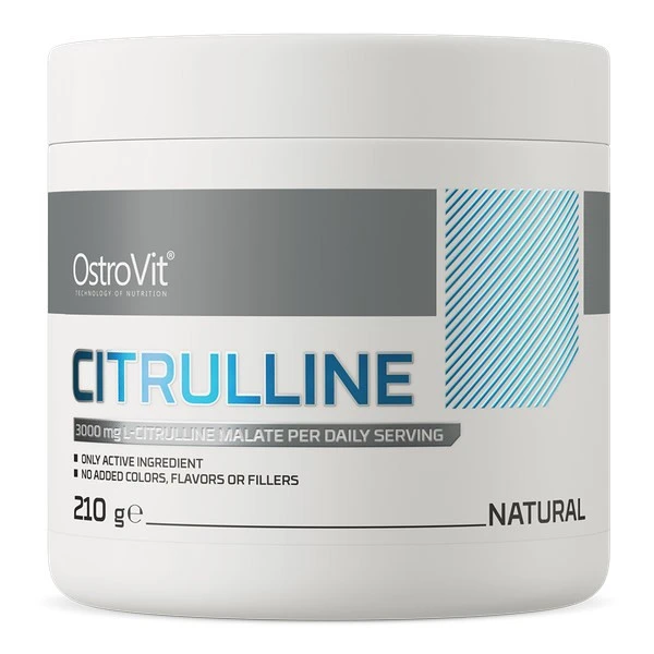 - Suplement diety OstroVit Cytrulina to wysokiej jakości produkt, który zawiera jabłczan cytruliny, witaminę B6 i taurynę. Jabłczan wykazuje dużą wchłanialność i przyswajalność przez organizm. Preparat marki OstroVit ma prosty skład.