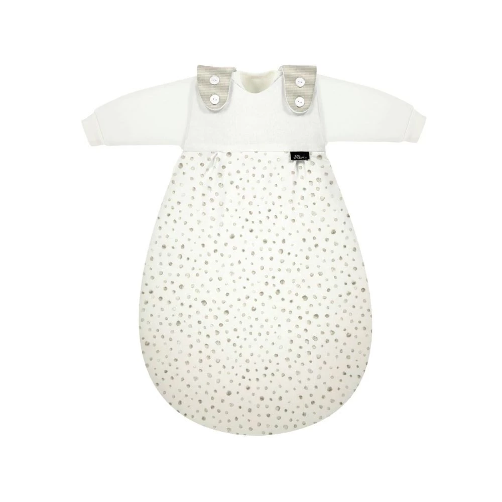 ALVI Baby-Mäxchen to trzyczęściowy system do spania, który składa się z 1 śpiworka zewnętrznego i 2 śpiworków wewnętrznych (pierwszych ubranek, które zakładamy zamiast body) wykonanych z bawełny organicznej. Kształt gruszki śpiworka zapewnia maluszkowi maksymalną swobodę ruchów i jest idealny dla niemowląt od pierwszej nocy po narodzinach. Śpiworek wewnętrzny jest wykonany z bawełny organicznej i posiada długie rękawy z miękkimi ściągaczami, który można również używać jako lekki śpiworek na lato. Dzięki obwodowemu zamkowi błyskawicznemu, zmiany pieluszki w nocy stają się łatwiejsze.