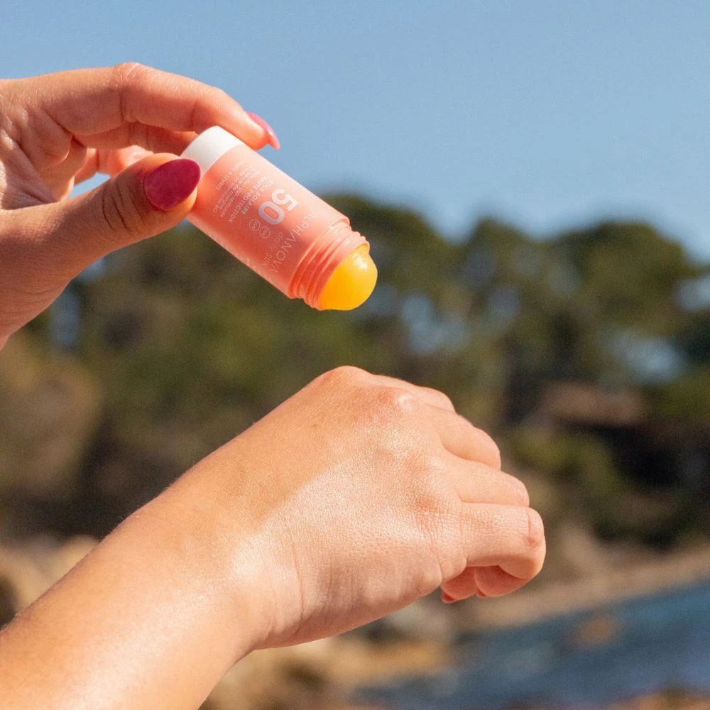 Sztyft przeciwsłoneczny z filtrem SPF 50. Wysoka ochrona, łatwa aplikacja dzięki nowej formule. Wyjątkowo wygodna]y produkt, do noszenia w torebce na co dzień. Podwójne działanie nawilżające i łagodzące dzięki starannie dobranym egzotycznym składnikom: organiczne masło mango, olej malinowy i organiczny sok z aloesu. Ten sztyft przeciwsłoneczny zawiera ponad 74% składników pochodzenia naturalnego i 20% składników organicznych.