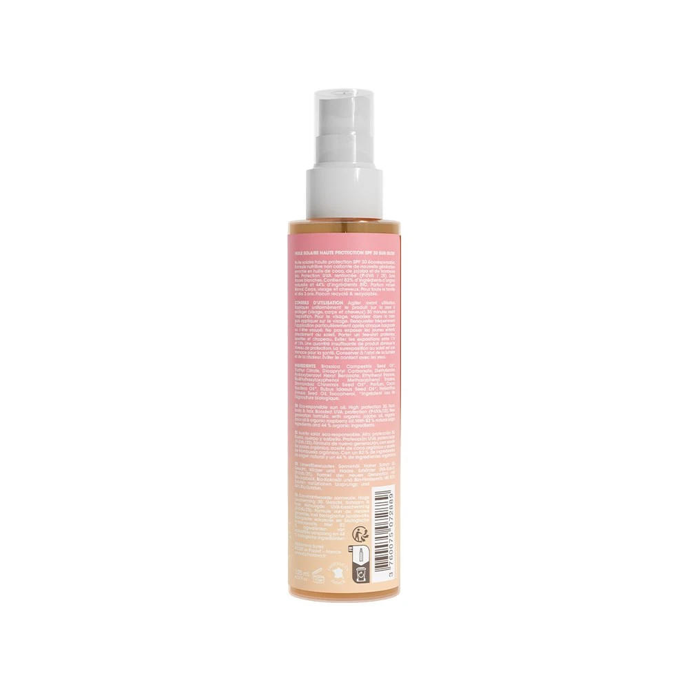 Olejek do opalania o wysokiej ochronie SPF 30. Wodoodporna formuła nowej generacji wzbogacona o olej kokosowy, organiczny olej jojoba i organiczny olej malinowy. Pierwszy produkt na rynku, który ma zwiększoną ochronę przed promieniami UVA, odpowiadającymi za starzenie się skóry i brązowe plamy. Ten olejek do opalania zawiera ponad 82% składników pochodzenia naturalnego i 44% składników ORGANICZNYCH. Jego bogata konsystencja chroni, odżywia i wzmacnia skórę, nadając satynowy efekt. Można go również nakładać na włosy, aby uzyskać jedwabistą, lśniącą teksturę. Jego egzotyczny zapach Monoï urzeka wszystkie zmysły. Dla całej rodziny, od 3 roku życia. Butelka z recyklingu i nadająca się do recyklingu. UVB 30 / UVA 33.