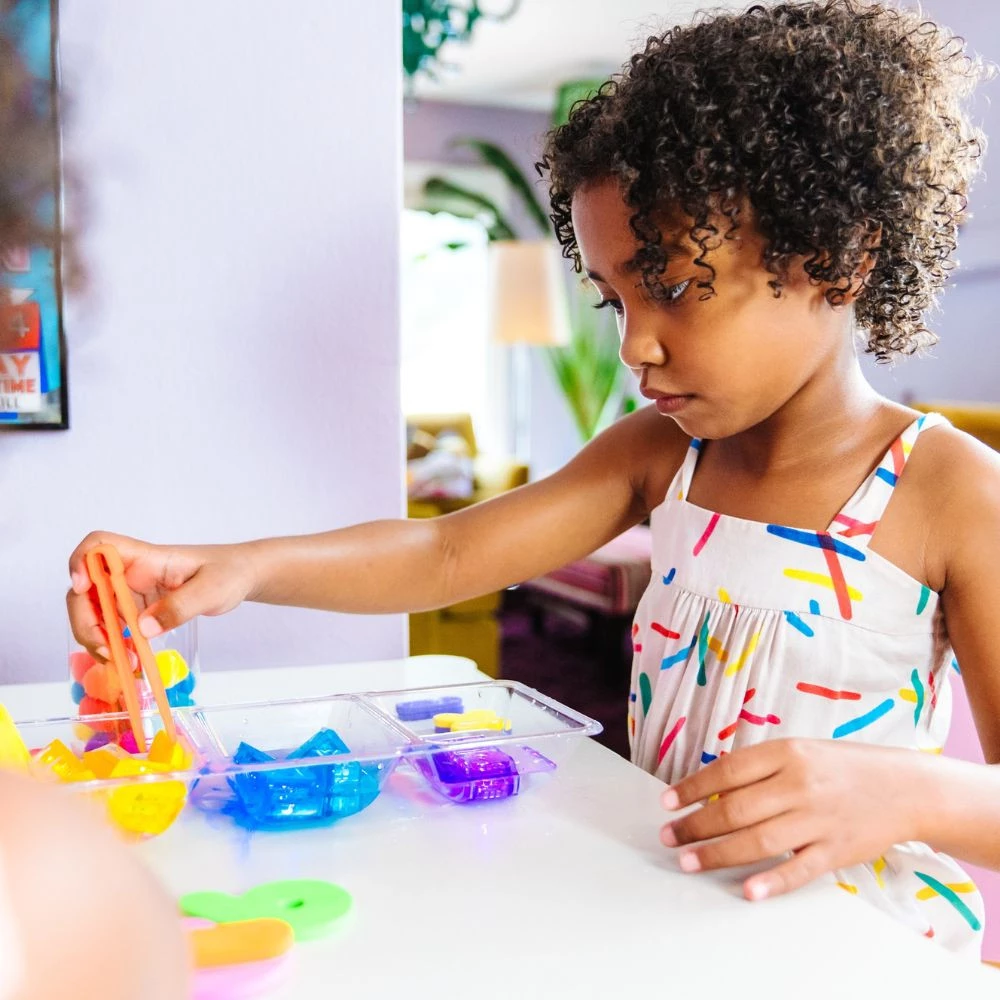 Odkryj sensoryczny świat podwodnych kolorów z kumplami z Glo Pals! Te wyjątkowe kostki aktywowane cieczą przeniosą Twoje dziecko w nowy wymiar kreatywnej zabawy. Zabawka, która urozmaici kąpiel Twojego dziecka! Będzie również idealnym dodatkiem do zabaw sensorycznych stymulujących bodźce wzrokowe! Włóż kostkę Glo Pals do słoika z wodą, dodaj kolorowe elementy takie jak wstążki, kulki i stwórz butelkę sensoryczną lub kolorową lampkę do namiotu czy bazy. Jak można używać Glo Pals? Zabawka do kąpieli - odkryj frajdę łowienia kolorowych kostek, wypatruj ich pod pianą, zobacz jak magicznie będzie wyglądać woda zmniejszymy natężenie światła w pomieszczeniu. Koloroterapia - kolory pozytywnie wpływają na nastrój dziecka. Niebieski wycisza, odpręża, relaksuje i ułatwia koncentracje. Żółty stwarza wrażenie przyjaznego, ciepłego, działa antydepresyjnie i zwiększa poczucie bezpieczeństwa. Fioletowy uspokaja, zapobiega bezsenności, relaksuje. Zielony odstresowuje, uspokaja, działa stabilizująco. Wprowadzenie odpowiednich kolorów pomoże Twojemu dziecku w wieczornym rytuale wyciszenia, a w ciągu dnia wesprze kreatywność. Kreatywna zabawka sensoryczna - kostki aktywują się w kontakcie z wodą, dlatego można wykorzystać je do zabaw rozwijających motorykę, sensorykę, a także kreatywność. Dziecko może łowić kostki patyczkami, szczypcami, może budować butelki DIY pełne kulek, brokatu, cekinów i innych elementów. Mnóstwo inspiracji do zabawy znajdziesz w materiałach social media Gio Pals. Lampiony, latarki - stwórz butelkę lub słoik pełen kolorowych elementów - dolej wody - zakręć i zobacz jak zmieni się wnętrze bazy Twojego dziecka czy też pokój po zgaszeniu światła. Poruszaj butelką, obserwuj światła. Zabawka do basenu - kolorowe, uśmiechnięte kostki to świetny kompan do nauki nurkowania, ale także towarzysz przyjemnej zabawy w baseniku w ogrodzie czy na tarasie. Pomogą zatrzymać Twoje dziecko w cieniu w upalne dni na dłużej. Jak działają kostki Glo Pals? Jedna kostka świeci do 16h, czyli do ok. 30 wieczornych kąpieli. Kostka świeci tylko przy kontakcie z wodą. Po wyjęciu z wody, kostka wyłącza się*. Każdka kostka ma niewymienną baterię guzikową. Jak dbać o kostki Glo Pals? W trosce o jak najdłuższą żywotność wbudowanej baterii, po zakończeniu użytkowania, kostkę należy opłukać pod bieżącą wodą i oczyścić z ewentualnych pozostałości mydła/płynu do kąpieli. Następnie osuszyć ręcznikiem lub papierem i przechowywać w suchym miejscu. Zabawka Glo Pals spełnia najwyższe normy bezpieczeństwa, dlatego bateria jest zintegrowana i nie podlega wymianie. Skąd pochodzi marka Glo Pals? Glo Pals to amerykańska marka produktów do stymulacji sensorycznej podczas zabawy w wodzie lub wodą. Inspiracją do stworzenia produktów Glo Pals była historia autystycznego chłopca, który bał się kąpieli. Świecące produkty Glo Pals pomogły mu przezwyciężyć strach przed wodą. Misją marki jest wspieranie dzieci w ich rozwoju sensorycznym i radość dzieci podczas kąpieli! * orientacyjny czas przybliżonej zabawy z kostką. Kostka świeci tak długo jak w środku pozostaje woda lub wilgoć. Higiena produktu po zabawie i osuszenie kostki przedłuża żywotność baterii. *** Opakowanie zawiera 4 kostki wielokolorowe. Bateria wbudowana guzikowa. Po wyczerpaniu baterii zaproś Glo Pals do dalszej zabawy. Możesz wykorzystać kostki do aktywności sensorycznej oraz stymulacji motoryki małej nawet jeśli już nie świecą. Zaproponuj dziecku przenoszenie kostek szczypcami, naukę liczenia i segregacji kolorów czy przesuwanie w masach typu slime. Świetnie nadają się także do zabaw dla pomysłowych maluchów np. jako ładunek do przewożenia pojazdami budowalnymi… Ciekawe komu uda się zbudować wyższą wieżę z kostek zanim ta się przewróci :) Dbaj o higienę produktu po każdym użyciu. Przeznaczone dla dzieci powyżej 3 roku życia. Miłej zabawy!