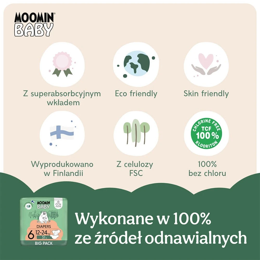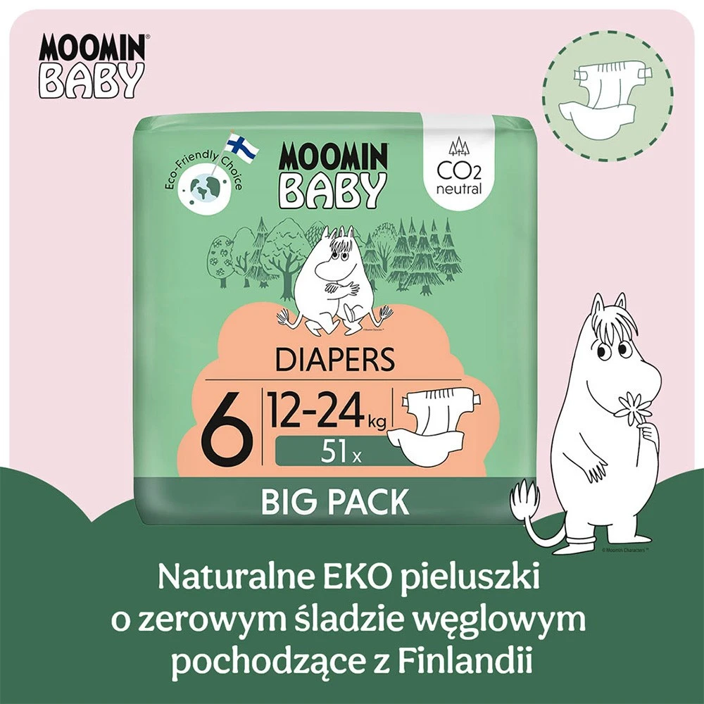 MOOMIN Baby, Pieluszki 6 JUNIOR (12-24kg), 51 szt. EKO BIG PACK