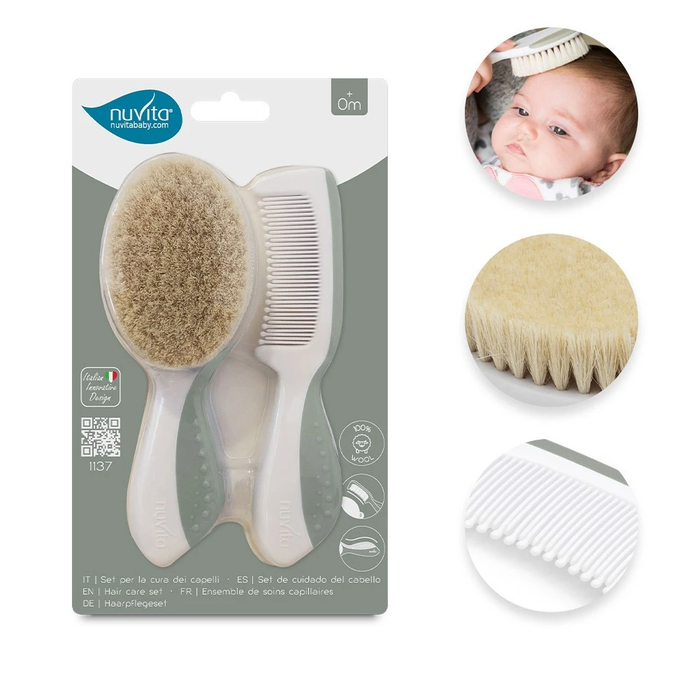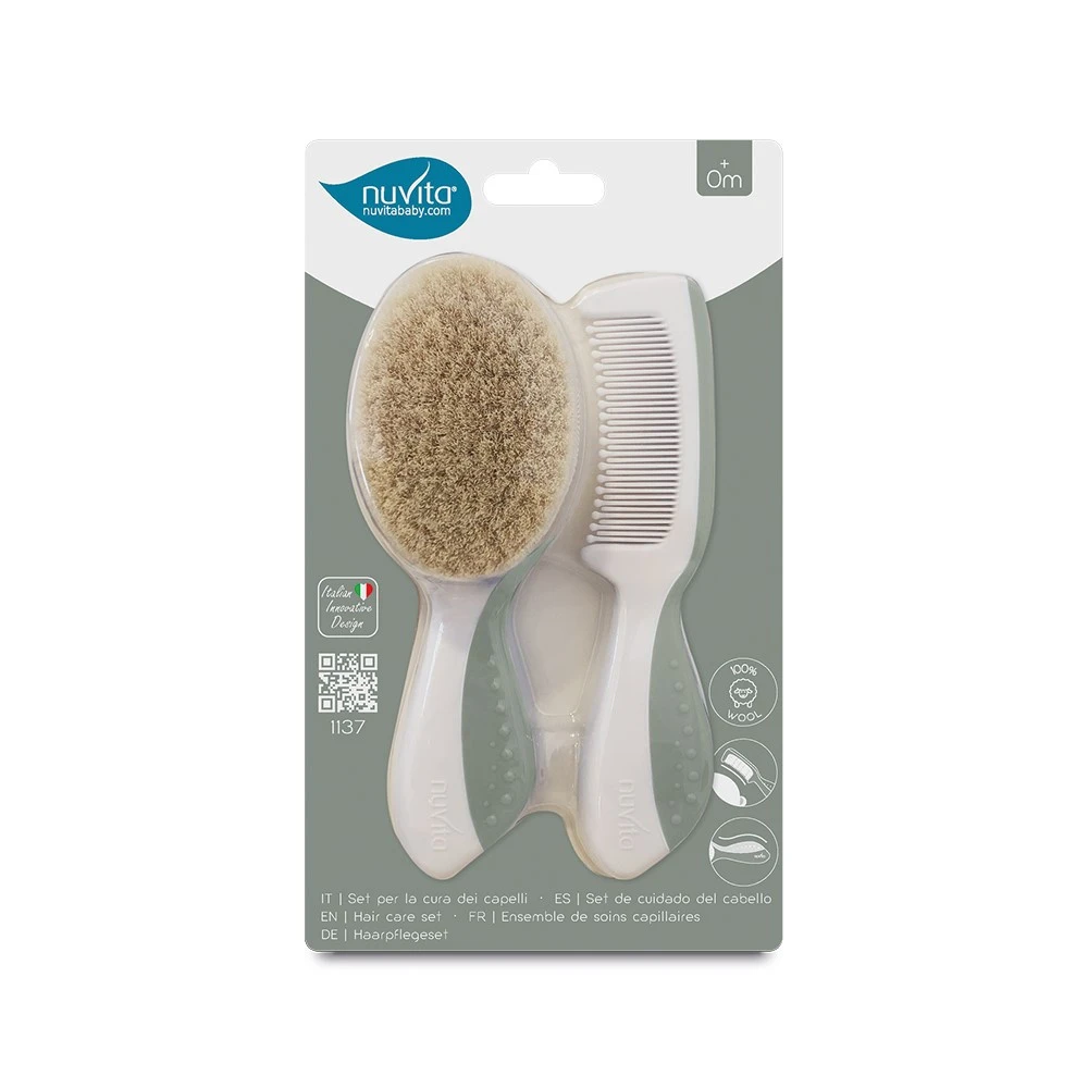 Nuvita, Zestaw dla dzieci: szczotka i grzebień, Sage Green