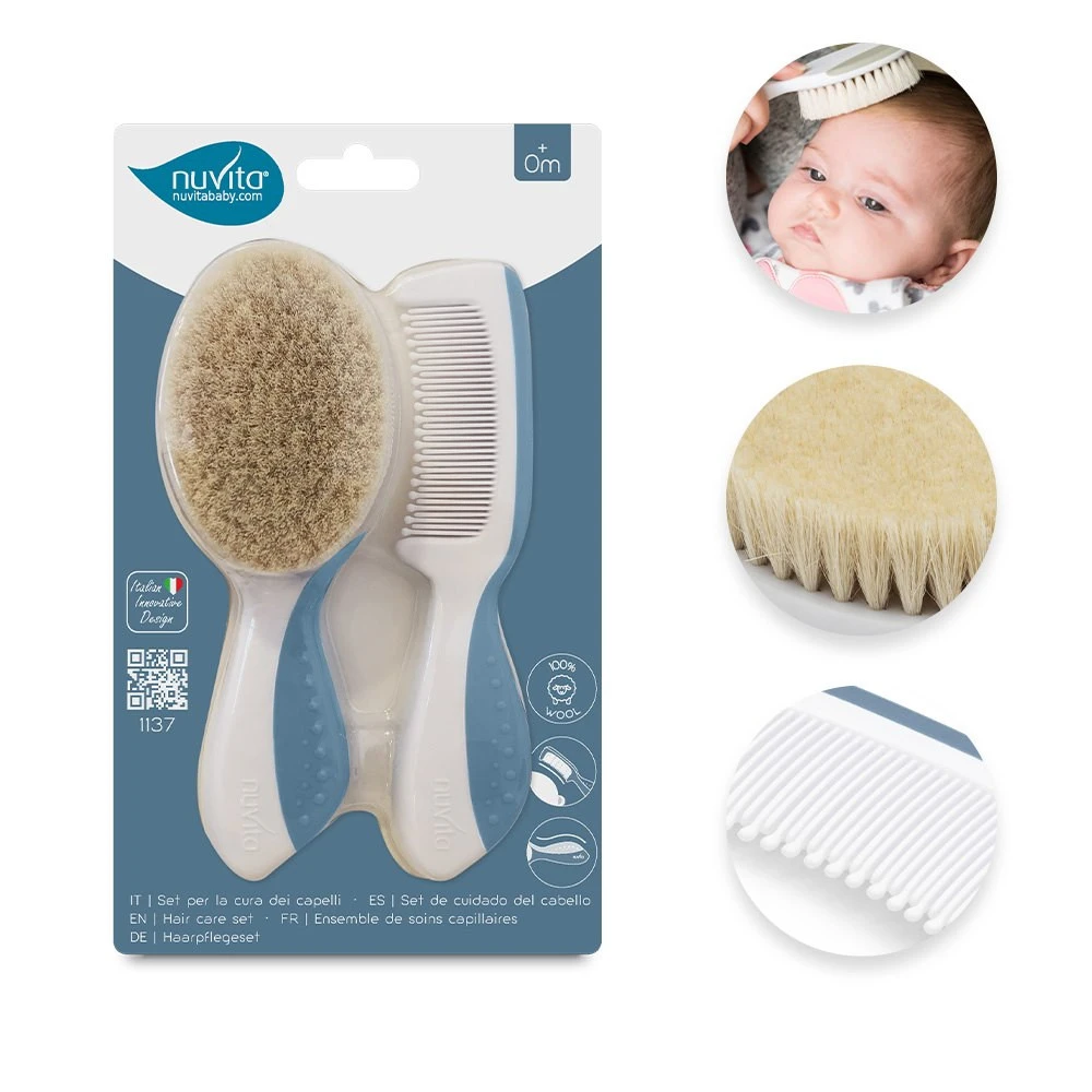Nuvita, Zestaw dla dzieci: szczotka i grzebień, Powder Blue