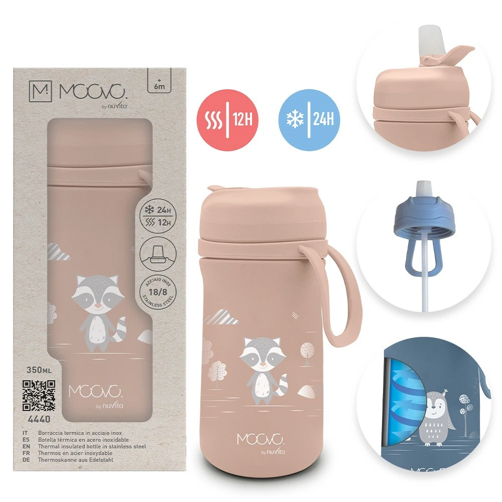 Izolowana termicznie butelka ze słomką, która posiada podwójnie izolowane wnętrze ze stali nierdzewnej. Właściwości izolacji próżniowej sprawiają, że termos przez długi czas utrzymuje temperaturę napojów - zarówno gorących, jak i zimnych. Zgodnie z wykresem przedstawionym w instrukcji, gorący napój o temperaturze około 95°C po sześciu godzinach utrzymuje temperaturę około 65°C, po dwunastu godzinach około 50°C, a po upływie doby około 38°C. W przypadku napojów zimnych zmiana temperatury przebiega bardzo powoli i nawet po kilku godzinach pozostają one wyraźnie chłodne.
