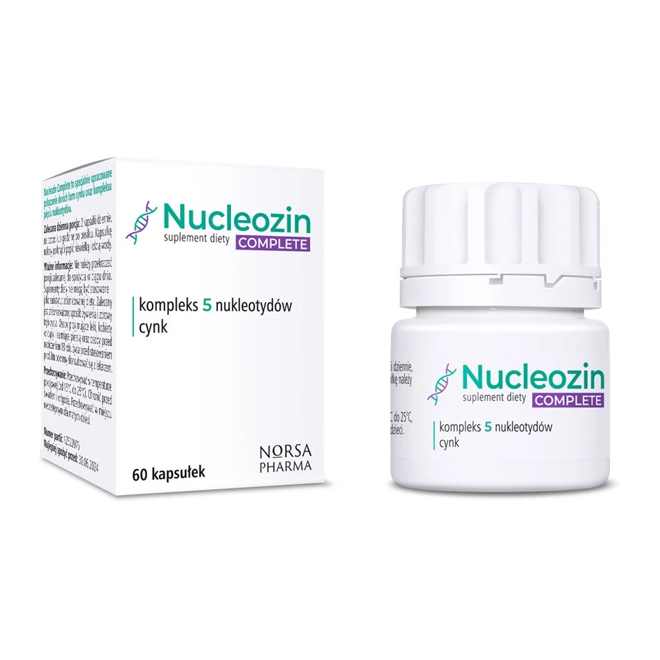 - Suplement diety Norsa Nucleozin Complete to wysokiej jakości produkt, który zawiera kompleks 5 nukleotydów oraz dodatek łatwo przyswajalnych form cynku. Preparat ten ma prosty i bezpieczny skład, bez zbędnych dodatków i ulepszaczy.