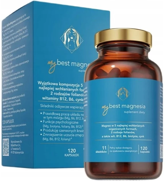 - MyBestMagnesia to suplement diety, który pomaga zmniejszyć uczucie zmęczenia i znużenia, wspomaga zdrową skórę, włosy i paznokcie oraz przyczynia się do utrzymania prawidłowych funkcji psychologicznych.