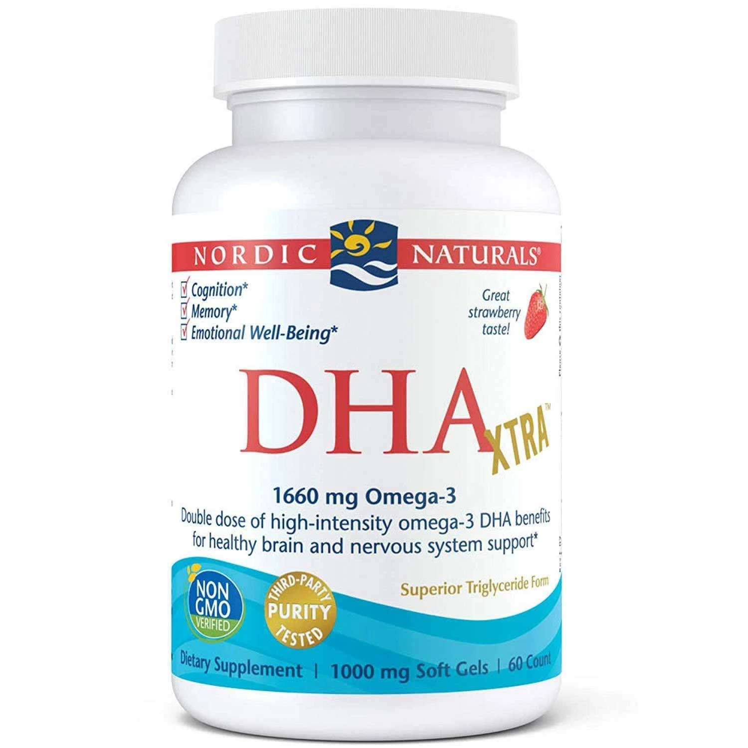 - Nordic Naturals DHA Xtra Truskawka to wysokiej jakości suplement diety dostarczający skoncentrowaną dawkę kwasów tłuszczowych Omega-3, ze szczególnym uwzględnieniem DHA.