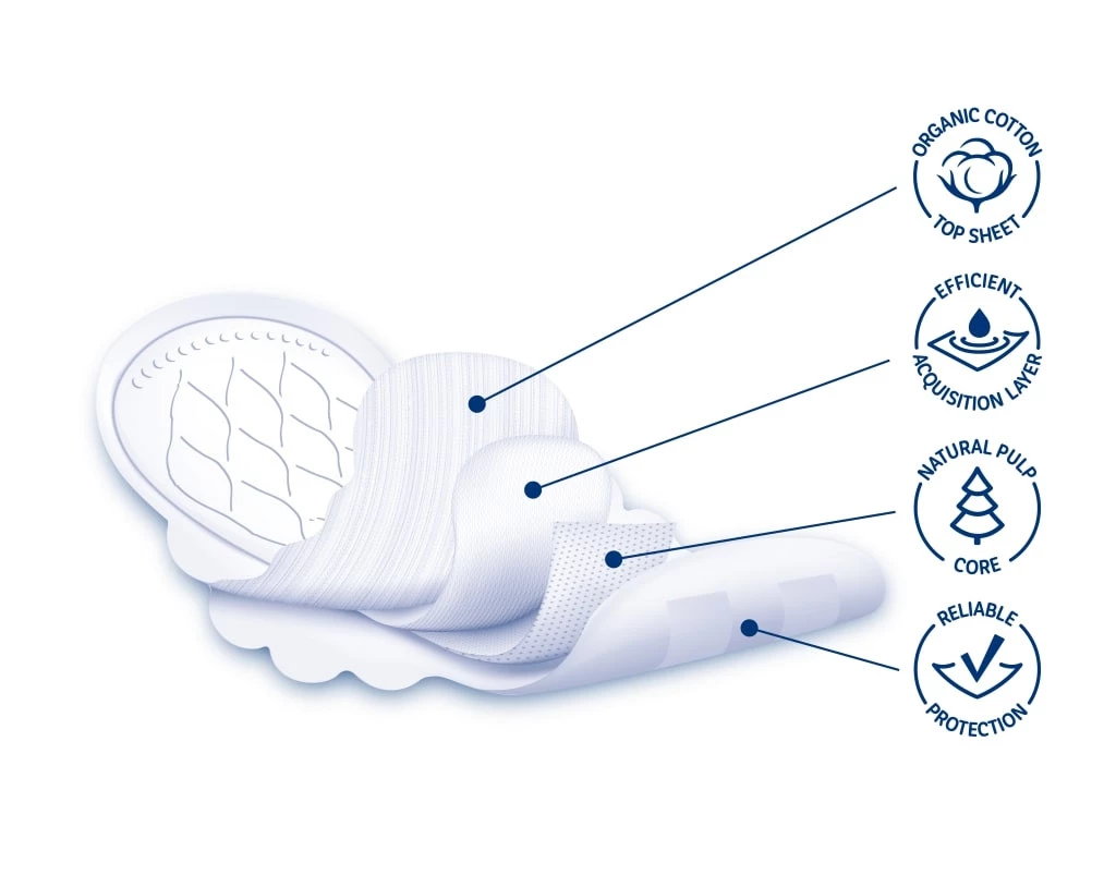 Zaprojektowane z myślą o wrażliwej skórze wkładki Vuokkoset Cotton Normal gwarantują komfort użytkowania oraz poczucie świeżości na co dzień. Miękka bawełna, z której wykonana jest powierzchnia wkładek, pochodzi z certyfikowanych upraw organicznych, dzięki czemu nie musisz się martwić o ryzyko wystąpienia podrażnień.