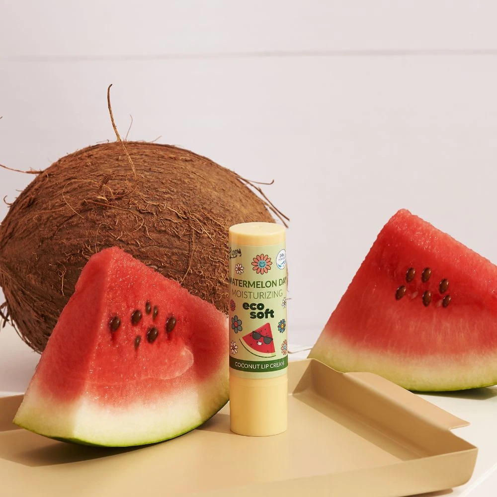 Kokosowy nawilżający balsam do ust z arbuzową nutą.