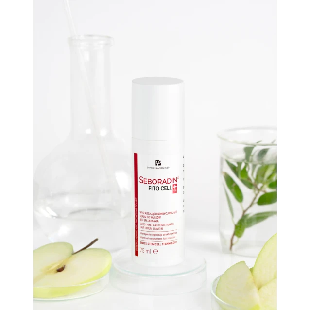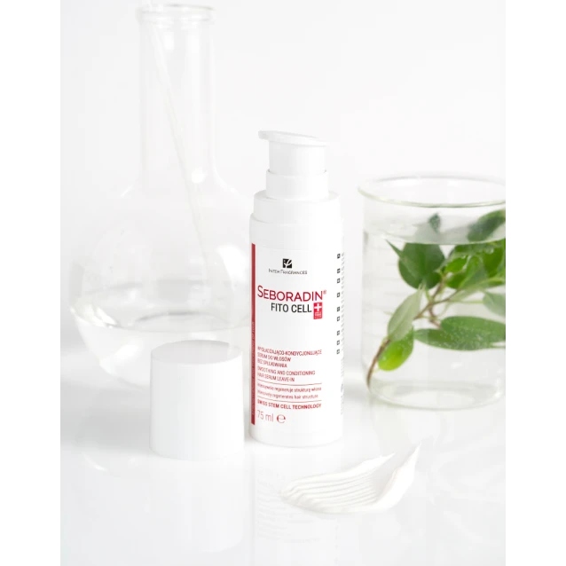 - Seboradin Fito Cell Wygładzające Serum do włosów, wzmacnia oraz głęboko i natychmiastowo poprawia nawilżenie włosów.